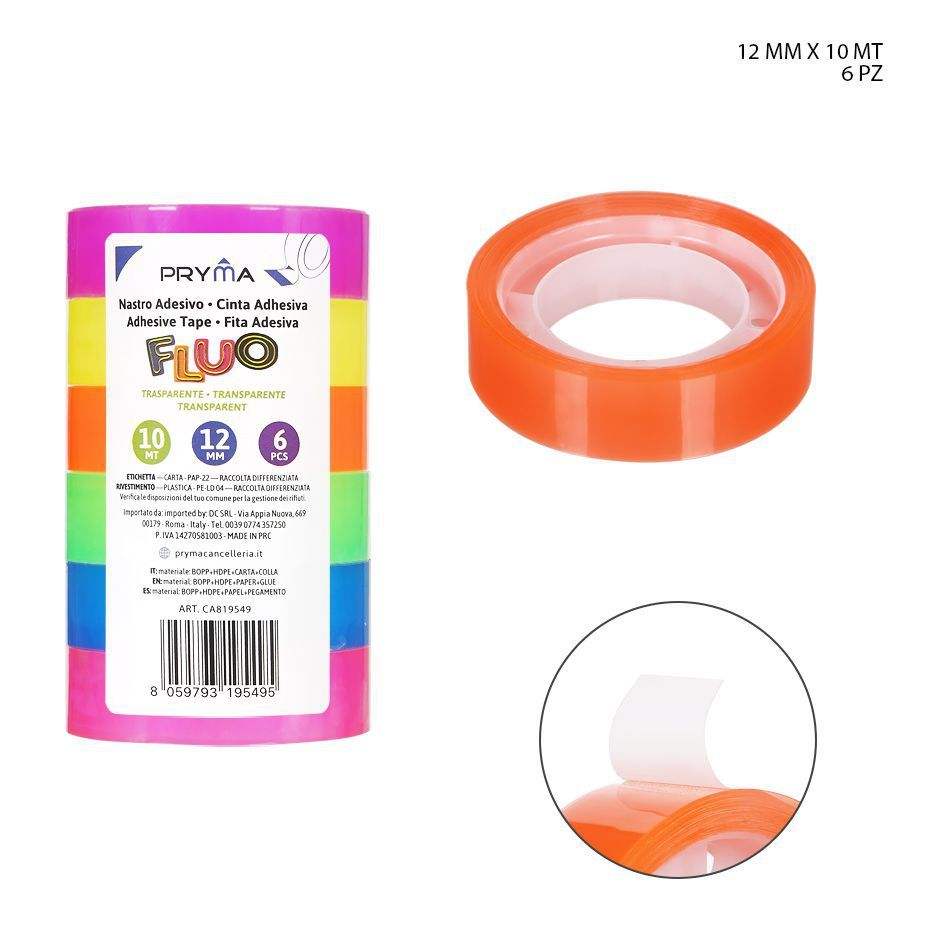 Nastro adesivo trasparente fluorescente 12mm x 10m 6 pz-forniture per ufficio