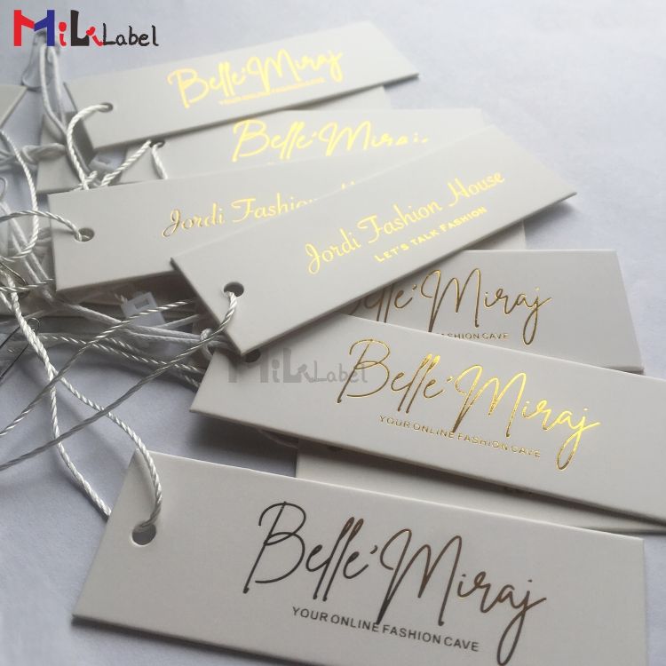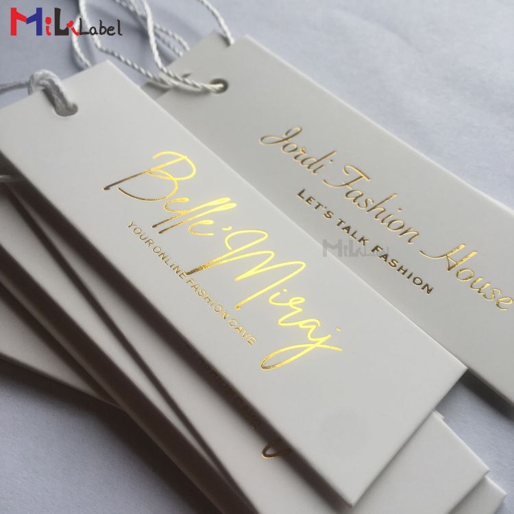 Flying Labels Foil Garment Tags Custom logo Tag White Swing Ticket Gold Foil Stamping logo hang Tag for Jeans and Clothing