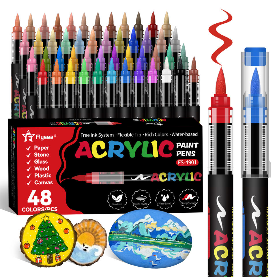 Set di 48 Pennarelli Acrilici Flysea con Punta Morbida a Pennello per Artisti, Fai-da-Te, Tela, Legno