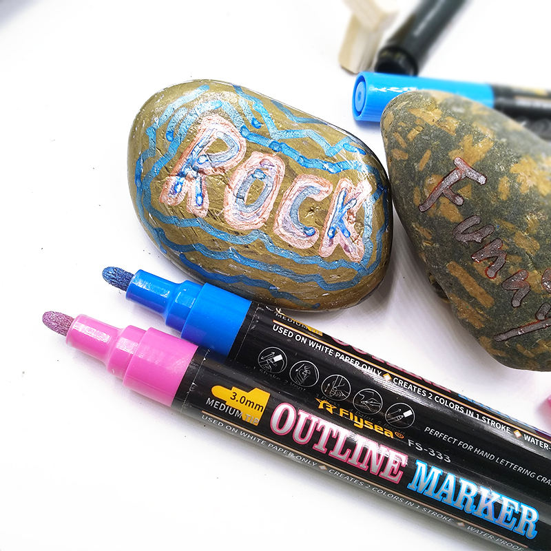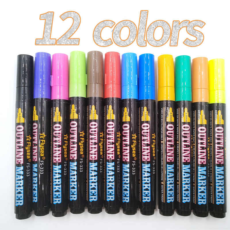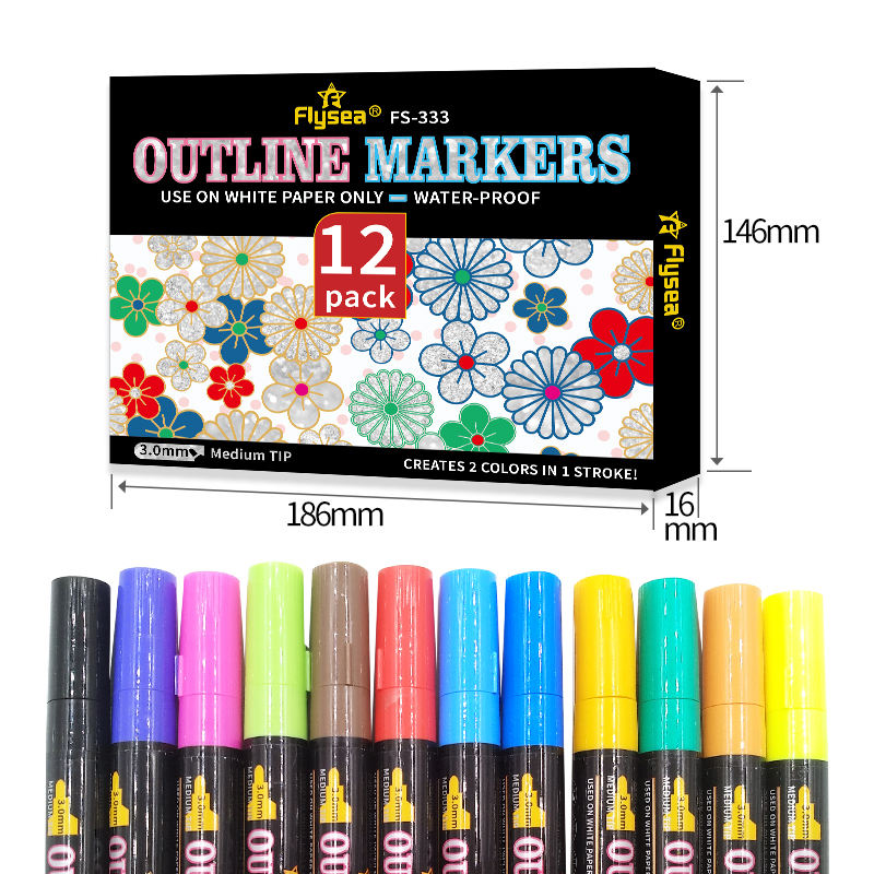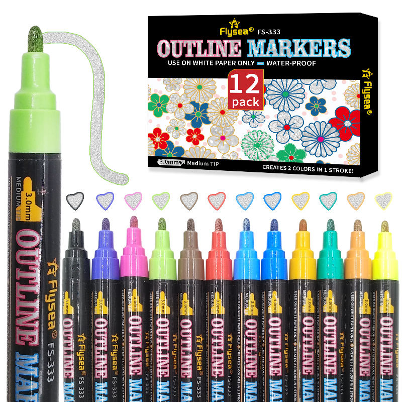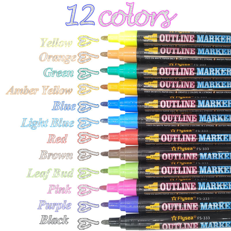 Pennarelli Outline Flysea con Punta da 3mm, Penne a Doppia Linea Colorate