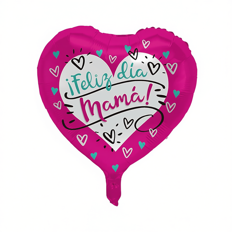 Palloncino a Cuore in Foil con Stampa Digitale 4 Colori 'Feliz Da Mam' 45cm 18in per Decorazioni Festive