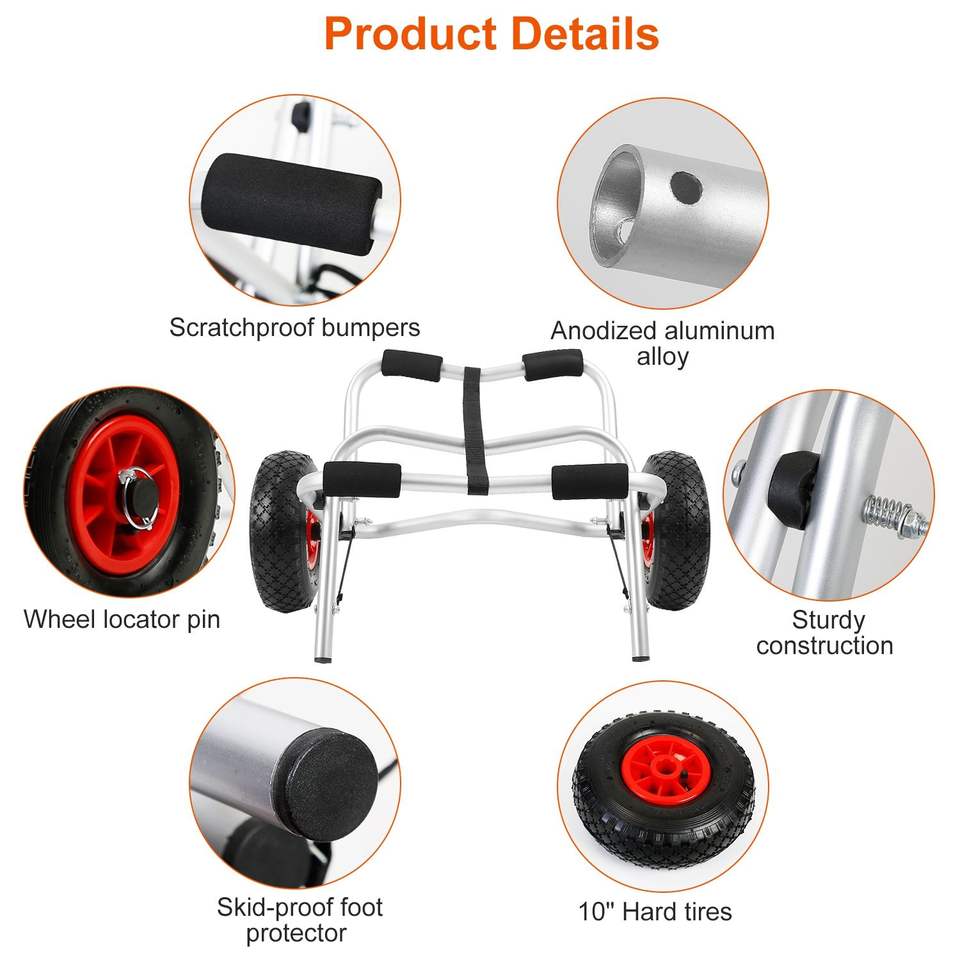 Carrello Pieghevole per Trasporto Paddleboard, Kayak, Canoa, Barca, Capacità 80 kg, Rimorchio per Carrelli e Trolley Manuali