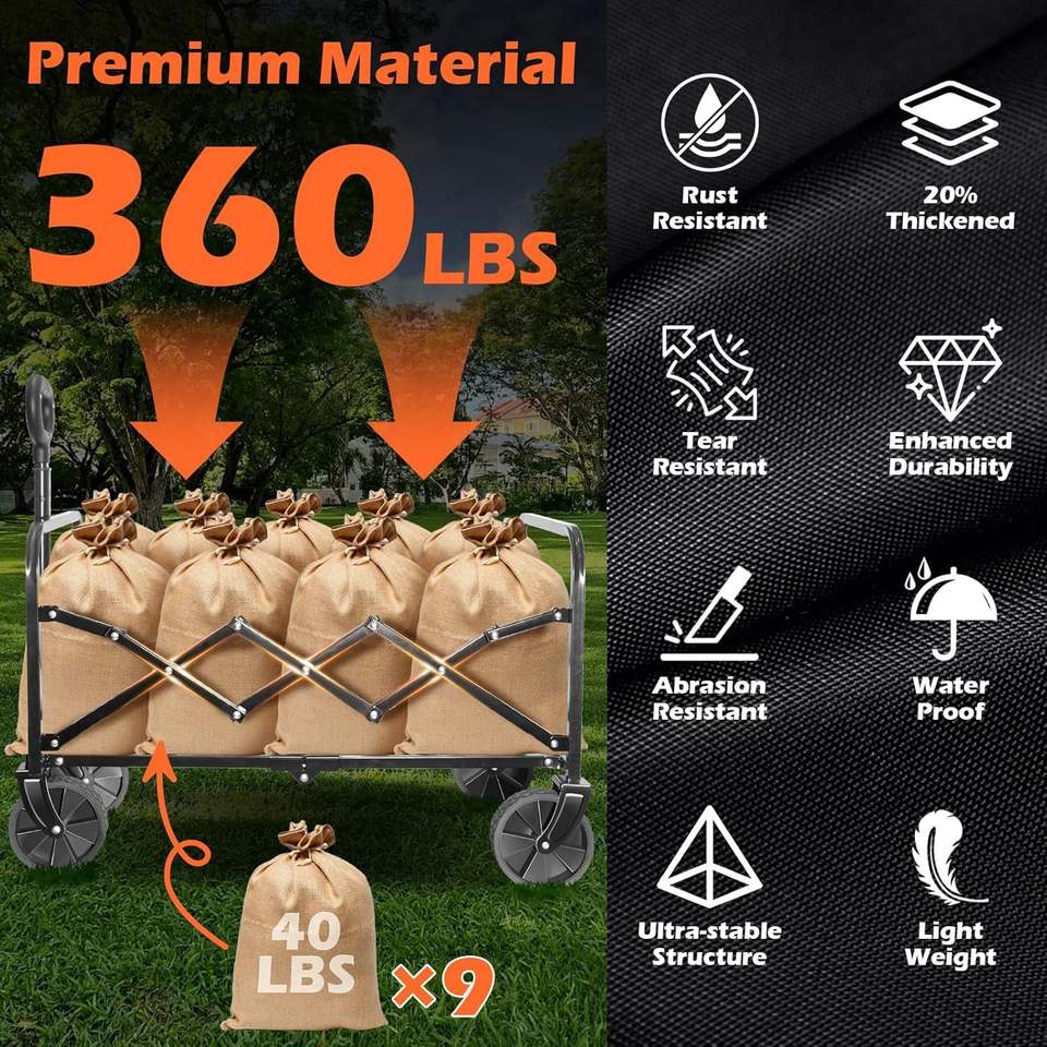 Carrello Pieghevole a 2 Ripiani con Ruote per Spiaggia, Campeggio, Sport e Giardino - Carrello da Campeggio Versatile e Richiudibile