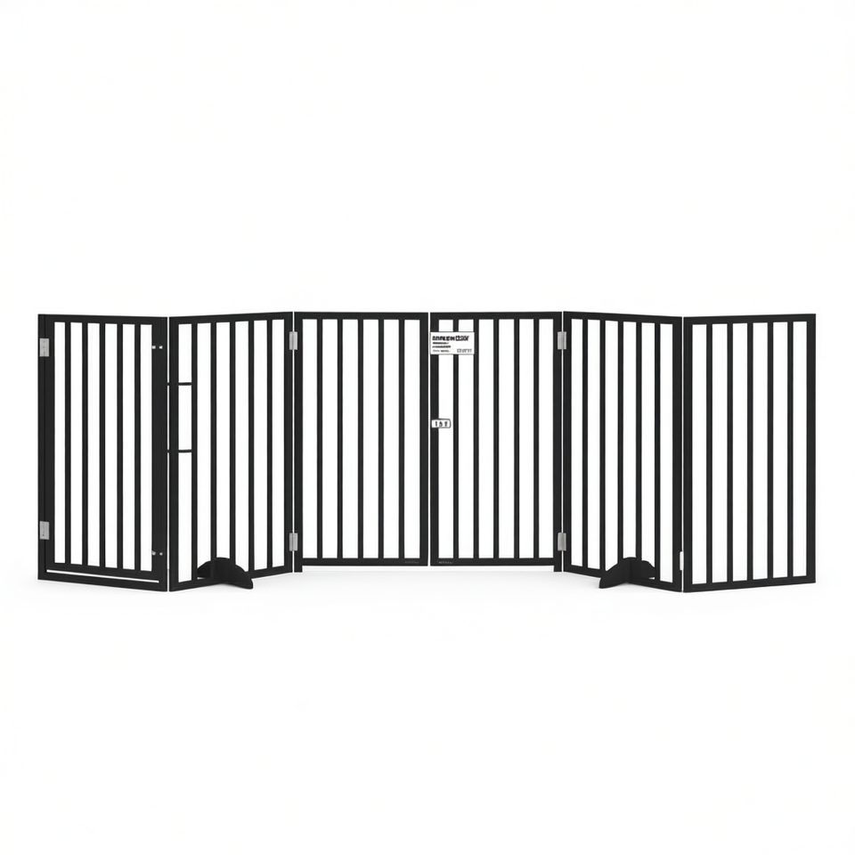 Cancelletto Pieghevole per Cani a 6 Pannelli, 118.1 Pollici, in Legno di Pioppo Nero, per Uso Interno