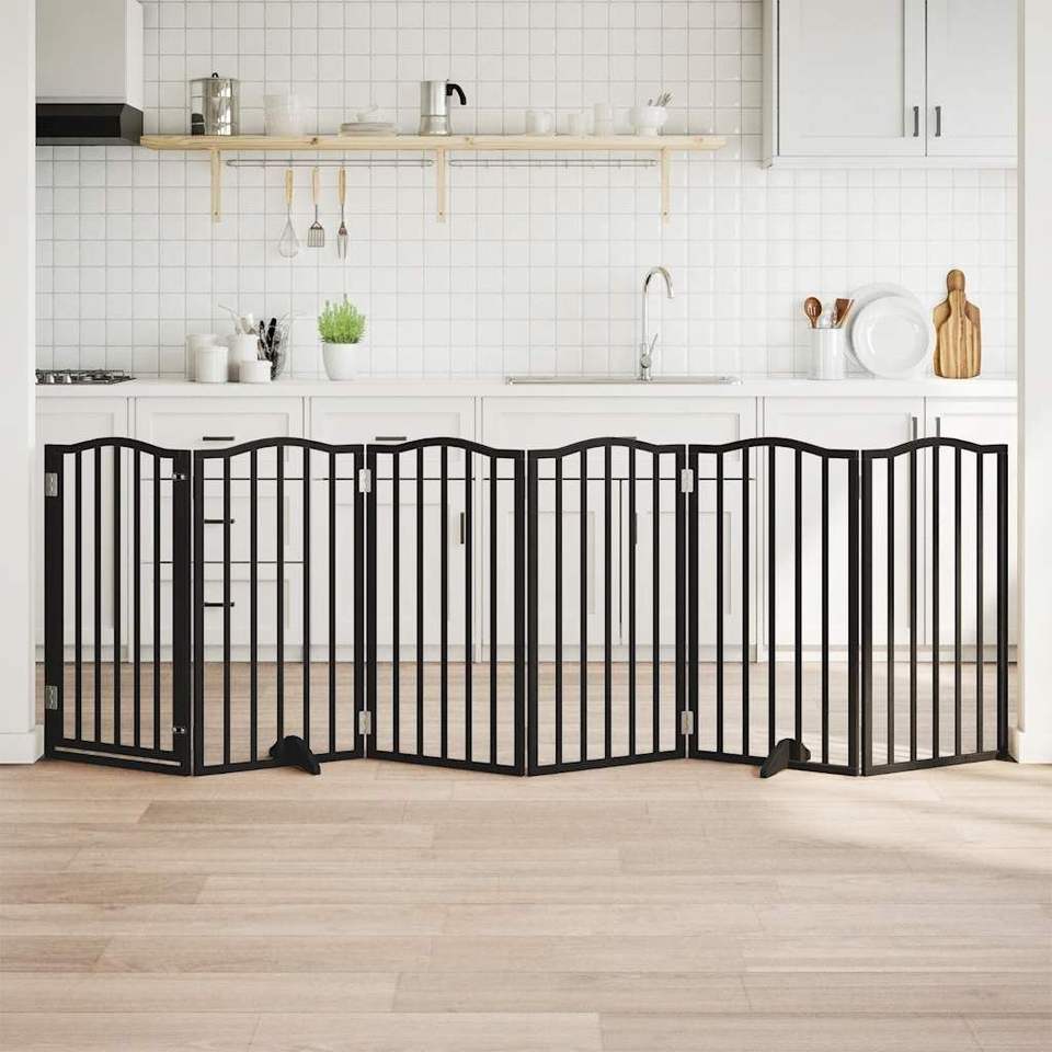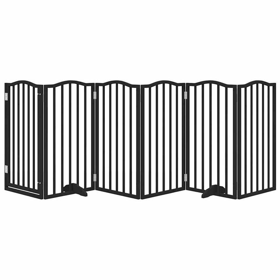 Cancelletto Pieghevole per Cani a 6 Pannelli con Porta, 300 cm, in Legno di Pioppo Nero, Recinzioni e Box per Animali Domestici