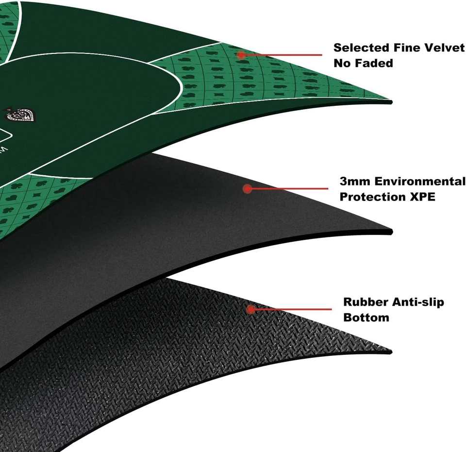 Tappetino da blackjack pieghevole antiscivolo, adatto per otto giocatori, tappetino da tavolo da casinò Texas Hold'em