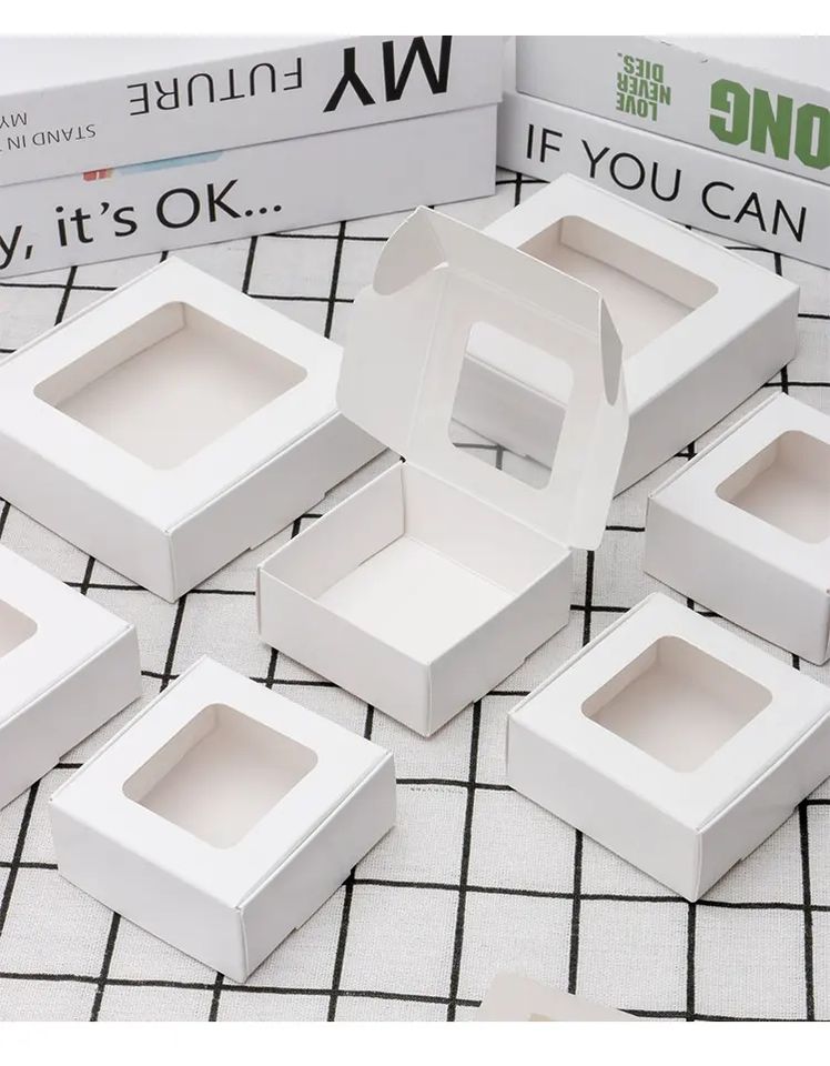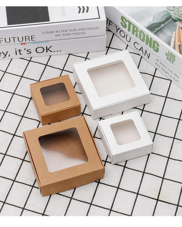 Pieghevole su misura di carta Kraft scatola quadrata piccola marrone sapone ondulato con finestra trasparente