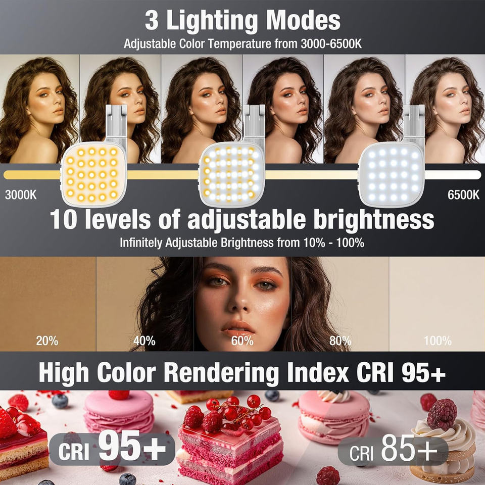 Luce LED Pieghevole Dimmerabile USB Compatta con Supporto per Selfie, Clip per Montaggio, Ideale per Videochiamate, Streaming, Regalo per Creatori di Contenuti, Compatibile con Mac e USB