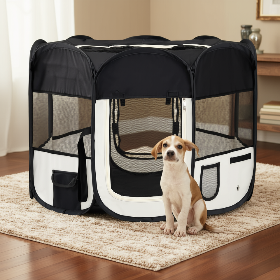 Recinto pieghevole per cani 35,4 x 35,4 x 22,8 pollici in rete con borsa per il trasporto per uso interno ed esterno