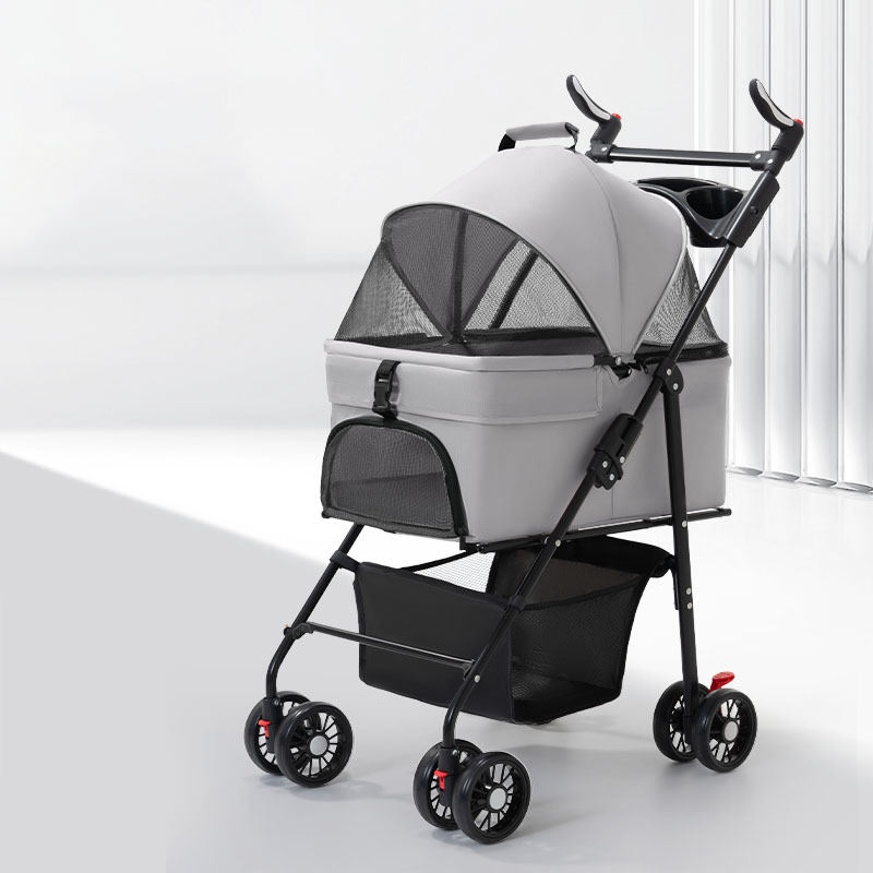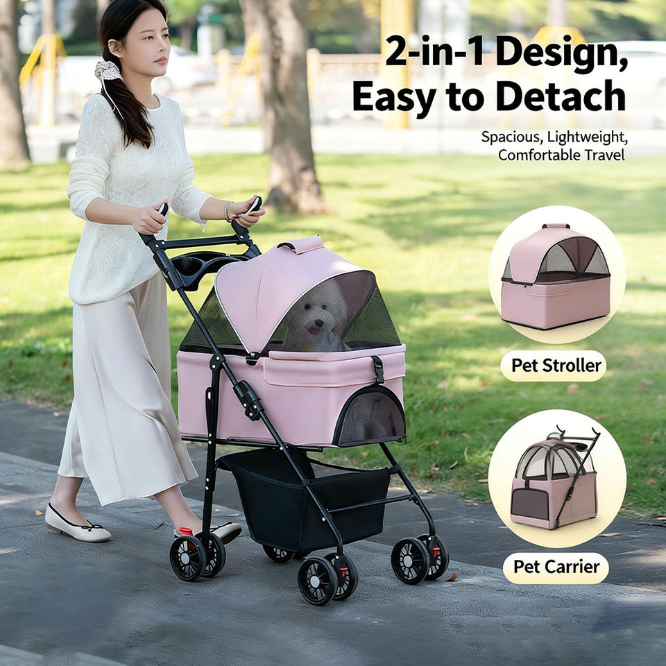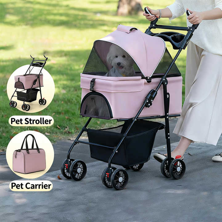 Passeggino Pieghevole Leggero per Animali Domestici con Chiusura a Cerniera e Design Staccabile, Capacità 15kg per Cani e Gatti di Piccola e Media Taglia