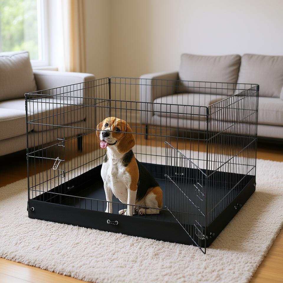 Foldable Metal Dog Playpen 24 X 36 In With Pad For Play And Exercise