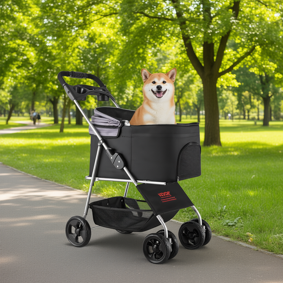 Passeggino Pieghevole per Animali Domestici a 4 Ruote, Carrello per Cani con Trasportino Staccabile, Finestre a Rete, Sistema Frenante Portatile, per Animali di Piccola e Media Taglia fino a 35 Libbre