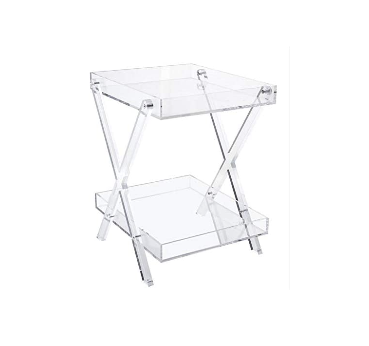 Folding 2-tier Acrylic Furniture Tray Table with 2 Storage Tray Lucite Side Coffee Table OEM Service Modern Contemporary