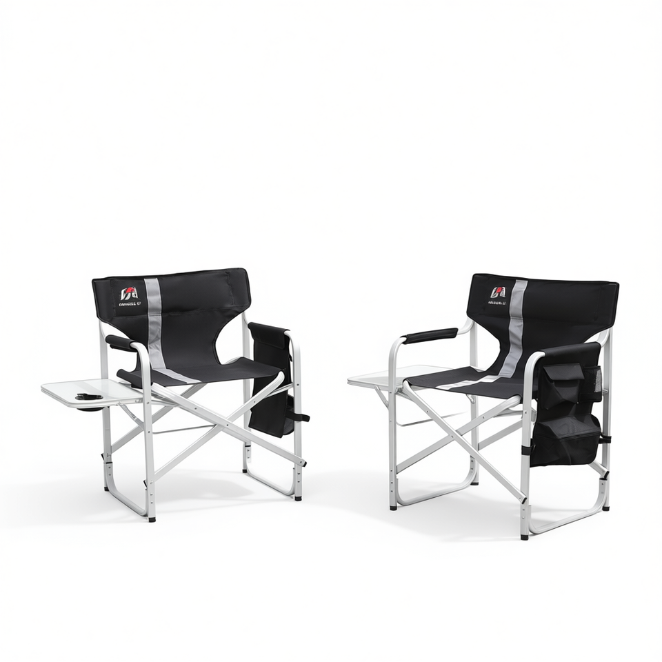 Sedia da Regista Pieghevole con Telaio in Alluminio, Seduta Imbottita, Tavolino Laterale e Vano Portaoggetti per Uso Esterno e Giardino