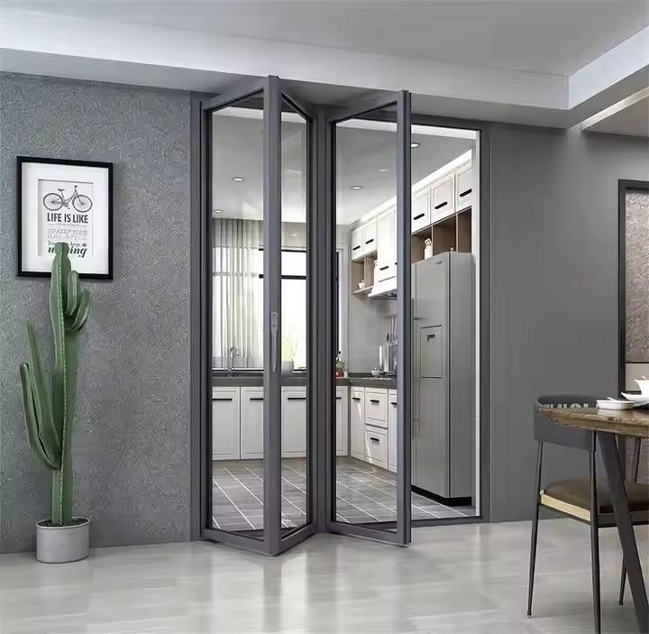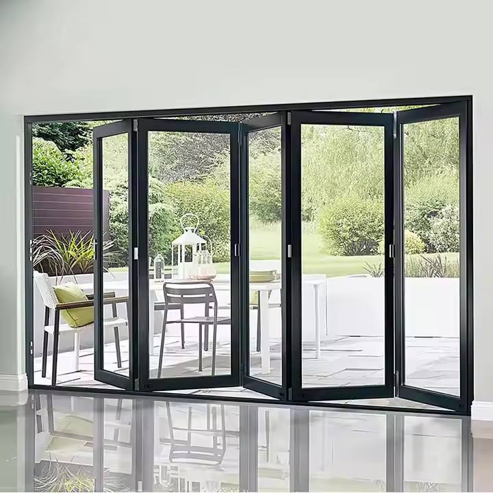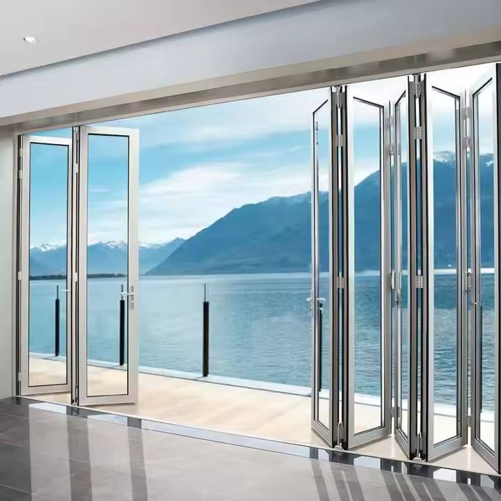 Pieghevole porte in vetro con telaio in alluminio e vetro antivento Bifold per soggiorno Villa scuola superficie finita
