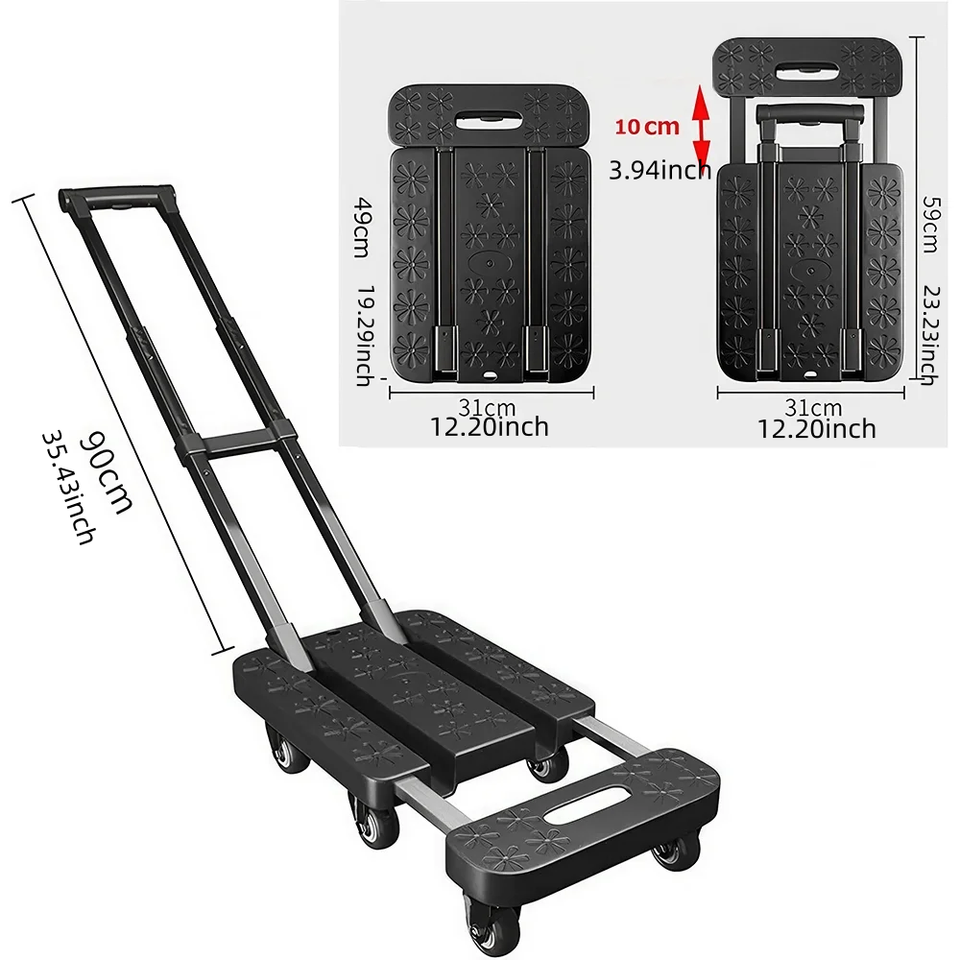 Carrello Pieghevole a 6 Ruote Girevoli, Carrello Portabagagli con Manico Regolabile, Carrello Utilitario Richiudibile per Traslochi