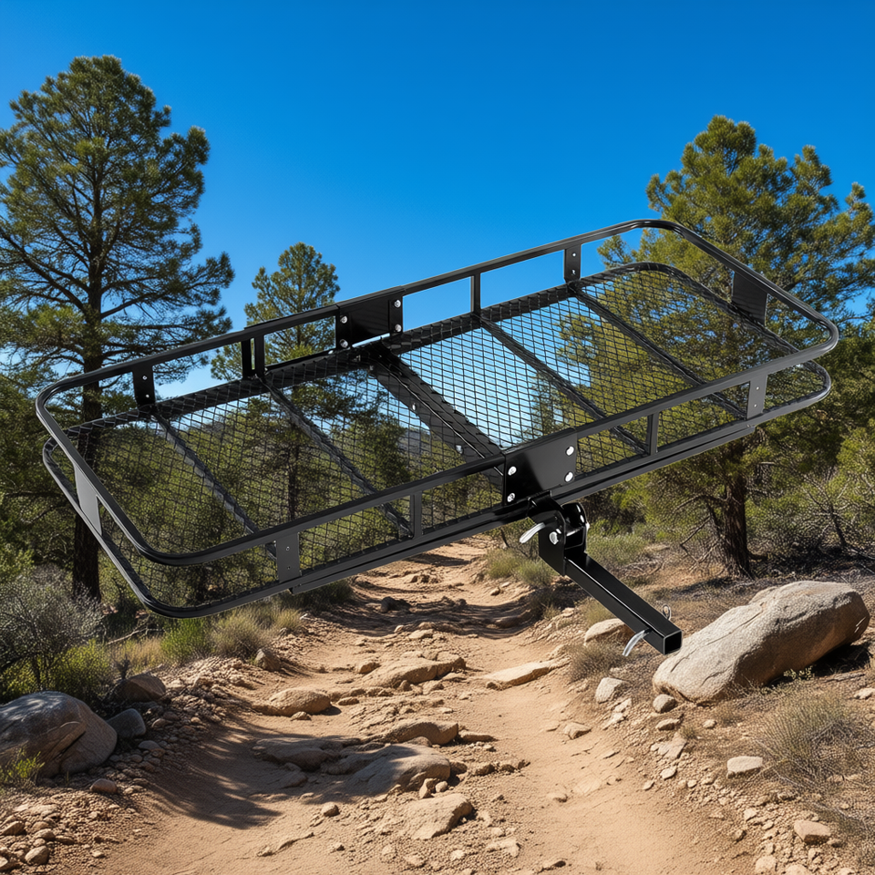 Folding Hitch Cargo Carrier 70 X 30 X 6 Inch Steel 500 Lbs Capacity For Outdoor Adventures