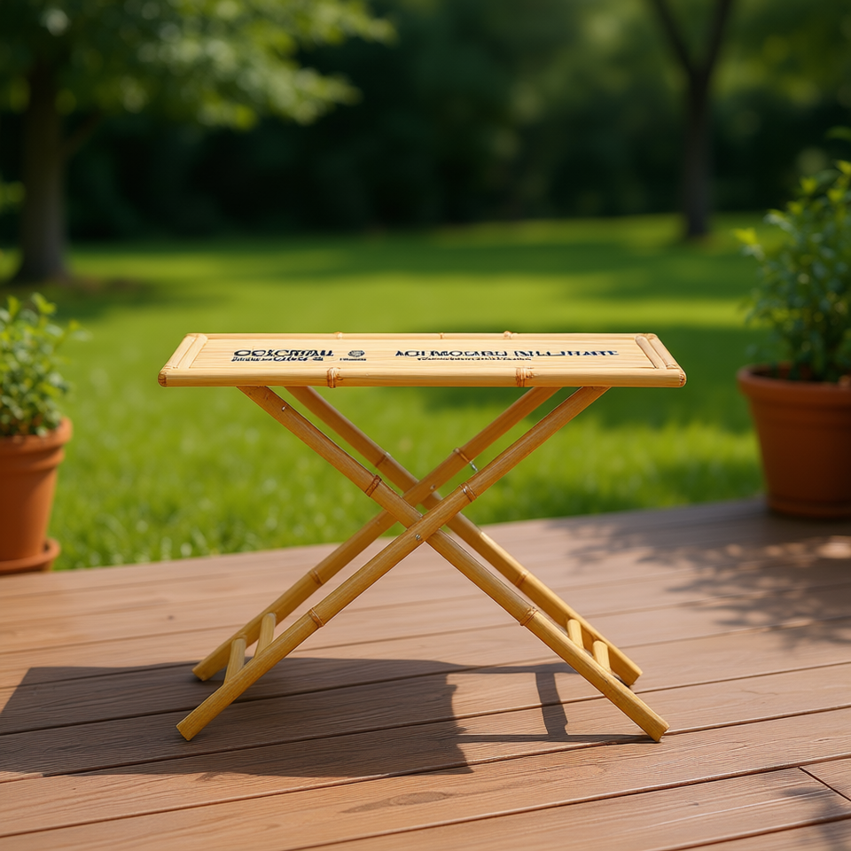 Folding Bamboo Outdoor Table 43.3x21.7x29.5 Inches Rustic Patio Furniture