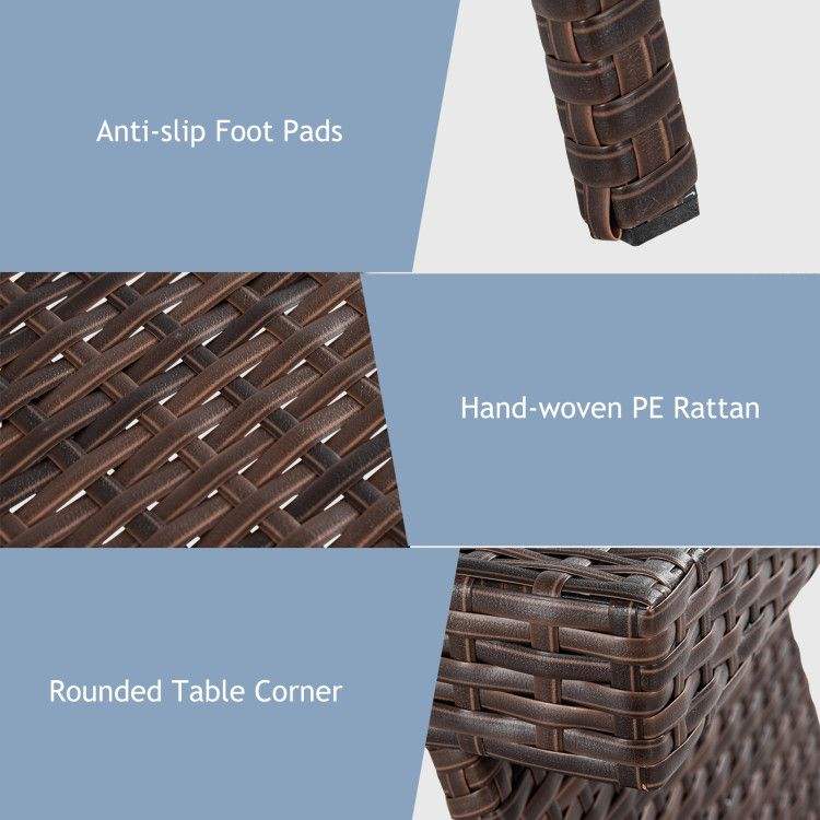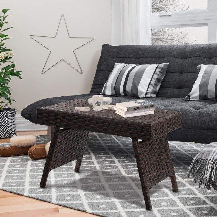 Tavolino Pieghevole in Rattan PE per Patio, Giardino e Arredamento da Esterno
