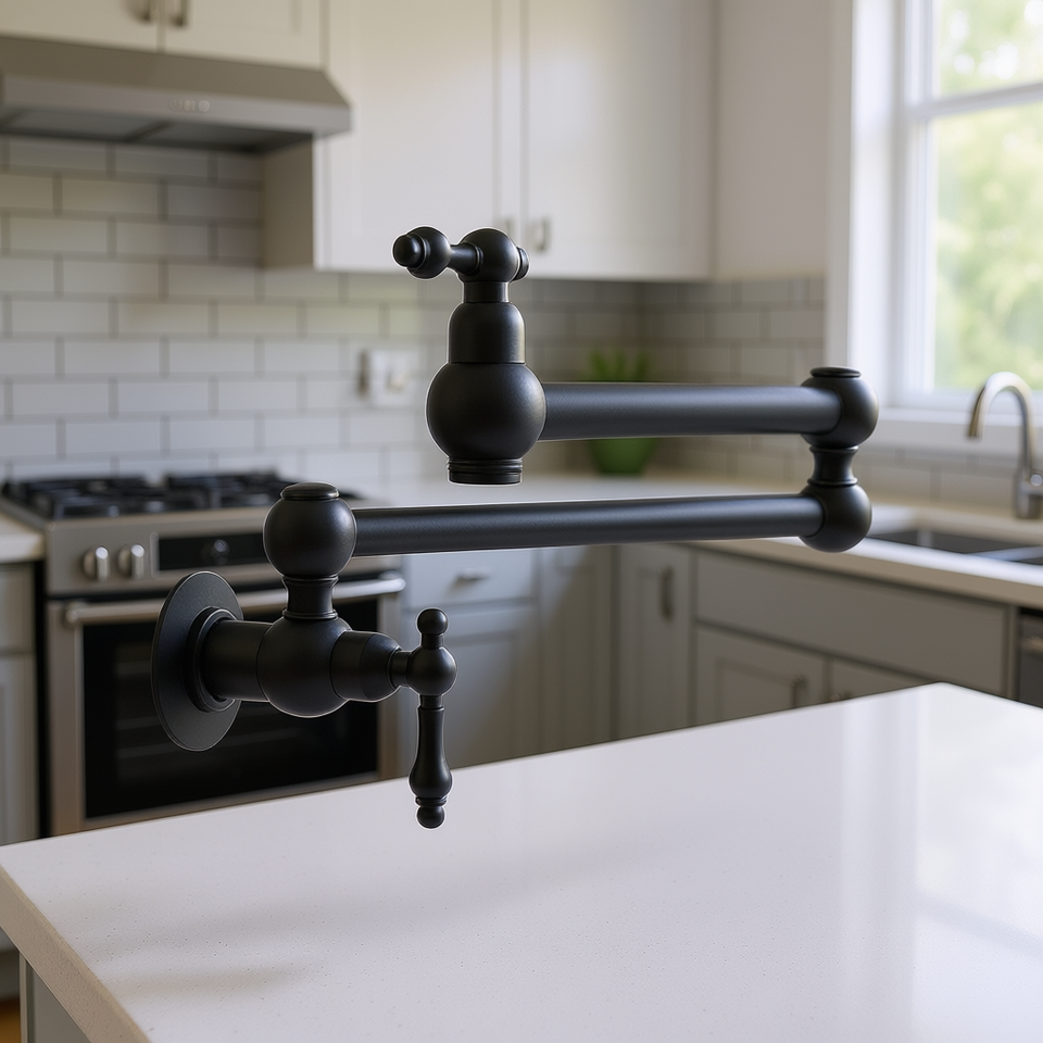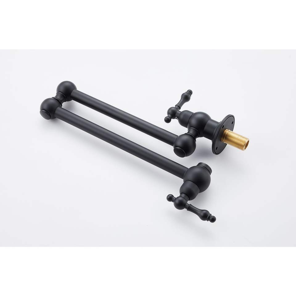 Folding Pot Filler Faucet Wall Mount Blackened Brass Industrial Kitchen Single Handle Knob Control