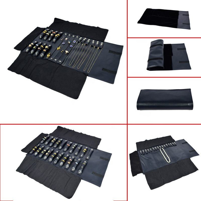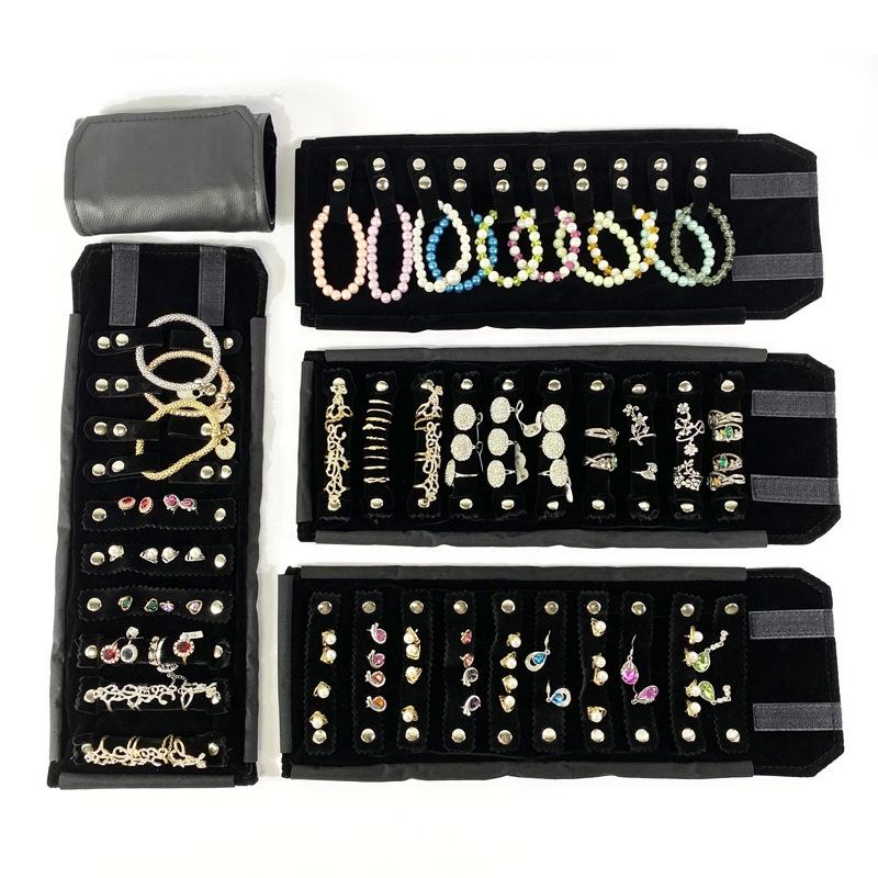 Custodia Arrotolabile da Viaggio per Gioielli, Borsa Portatile in Pelle e Velluto, Organizer Antiurto e Antipolvere per Anelli, Collane e Oggetti Preziosi