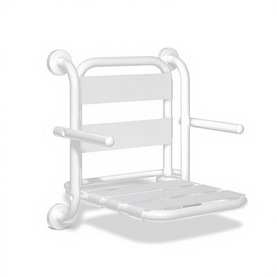 Sedile pieghevole con schienale e braccioli bianco, larghezza 52,5 cm, lunghezza 53,5 cm, attrezzatura di sicurezza per il bagno
