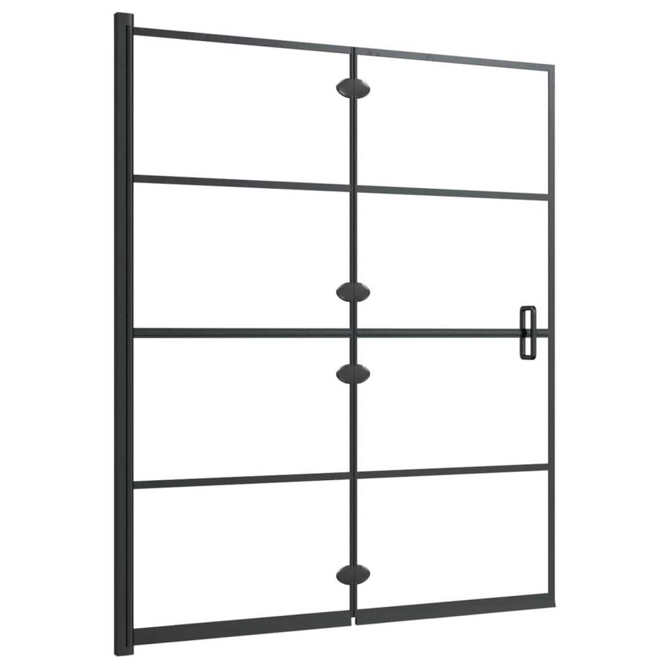 Box Doccia Pieghevole 47.2x55.1 Pollici con Telaio Nero e Vetro Temperato, Design Minimalista, Porta Doccia Rettangolare