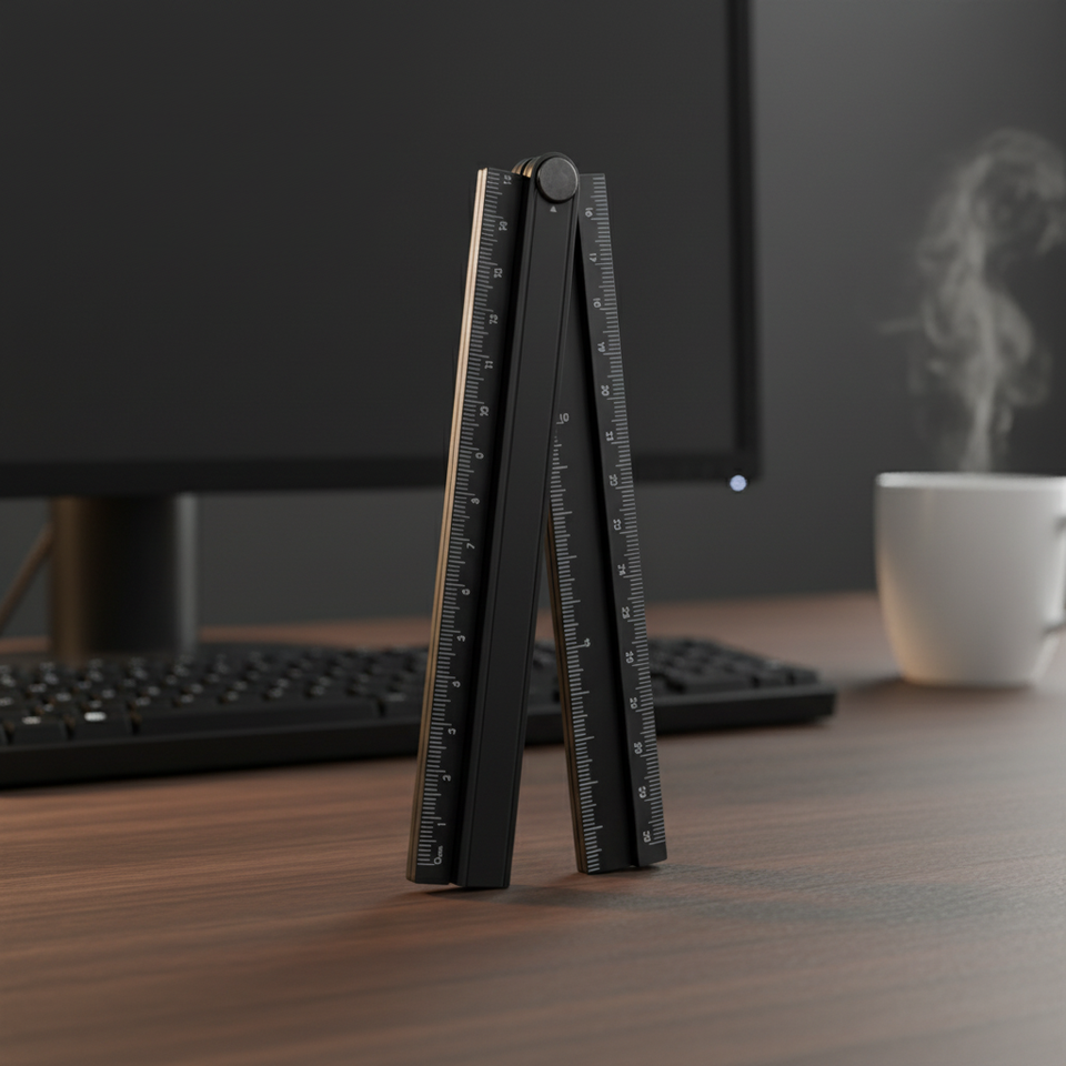 Righello Pieghevole 30cm con Goniometro in Metallo, Strumento di Misurazione Geometrica per Architetti