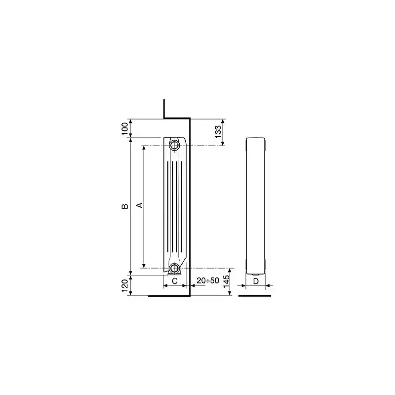 Radiatore Fondital BLITZ Super B4 a 5 Elementi in Alluminio Pressofuso con Interasse di 700 mm per Sistemi HVAC Domestici Prodotto in Italia
