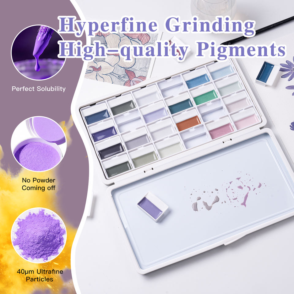 Set di Acquerelli Semi-Solidi Professionali Fontainebleau per Hobby, Kit da 24 Colori