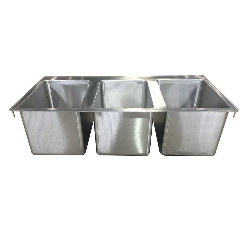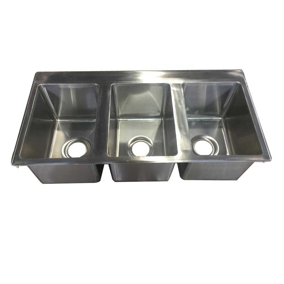 Lavello Triplo in Acciaio Inox 304 per Uso Alimentare, Lavello da Incasso con Scarico Centrale, Lavello Commerciale per Cucina di Piccole Dimensioni