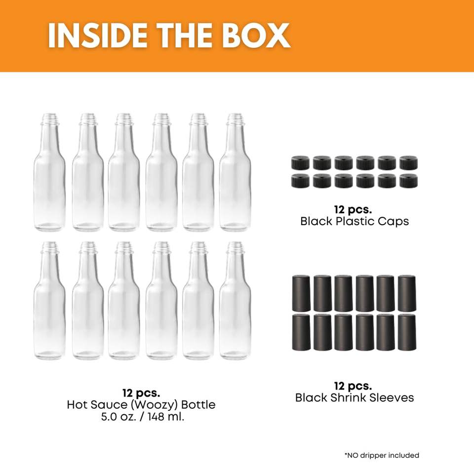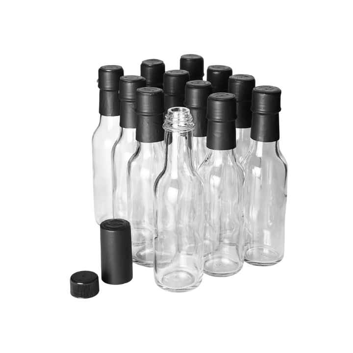 Bottiglia in Vetro Trasparente per Salsa Piccante con Tappo a Vite in Plastica, Grado Alimentare, 90 Ml 150 Ml 250 Ml