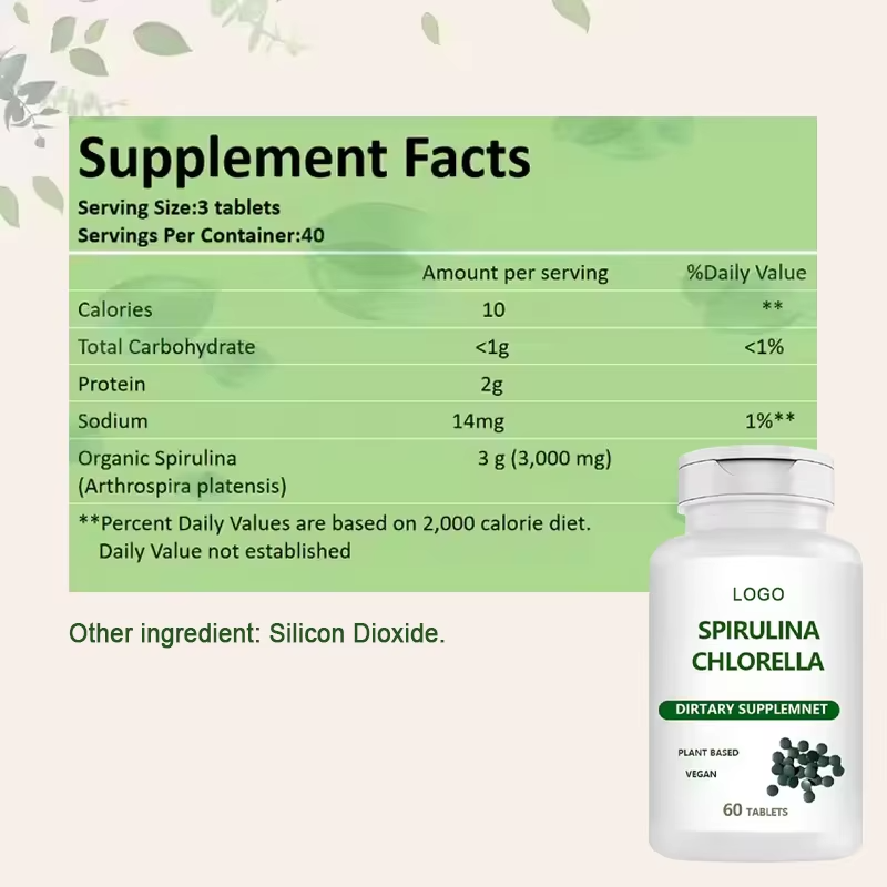 Food Supplement Organic Chlorella Tablets Nutritional Supplements Spirulina and Chlorella Tablets for Weight Management Immunity