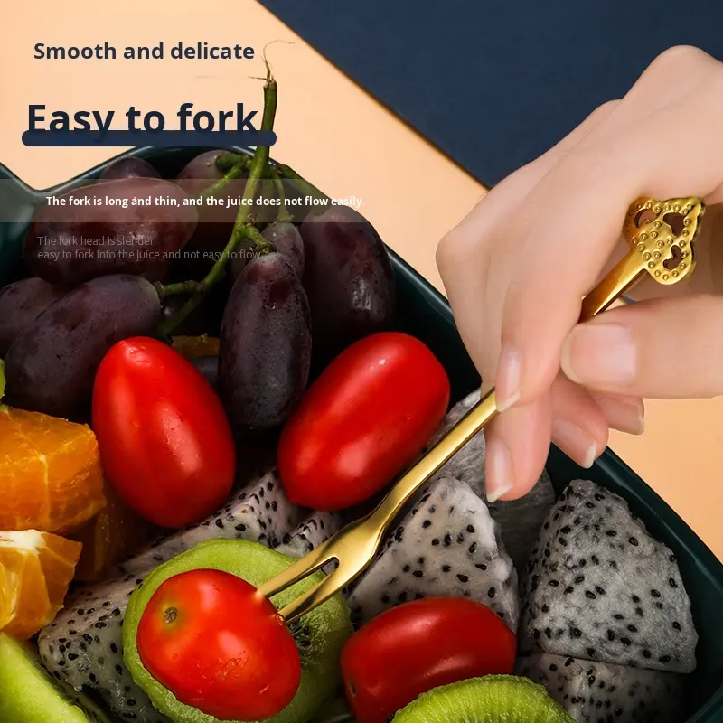 Set di Forchette per Frutta e Dessert in Acciaio Inox 304 di Grado Alimentare, Design Creativo a Forma di Cuore, Stile Europeo, Forchetta a Due Punte per Mooncake
