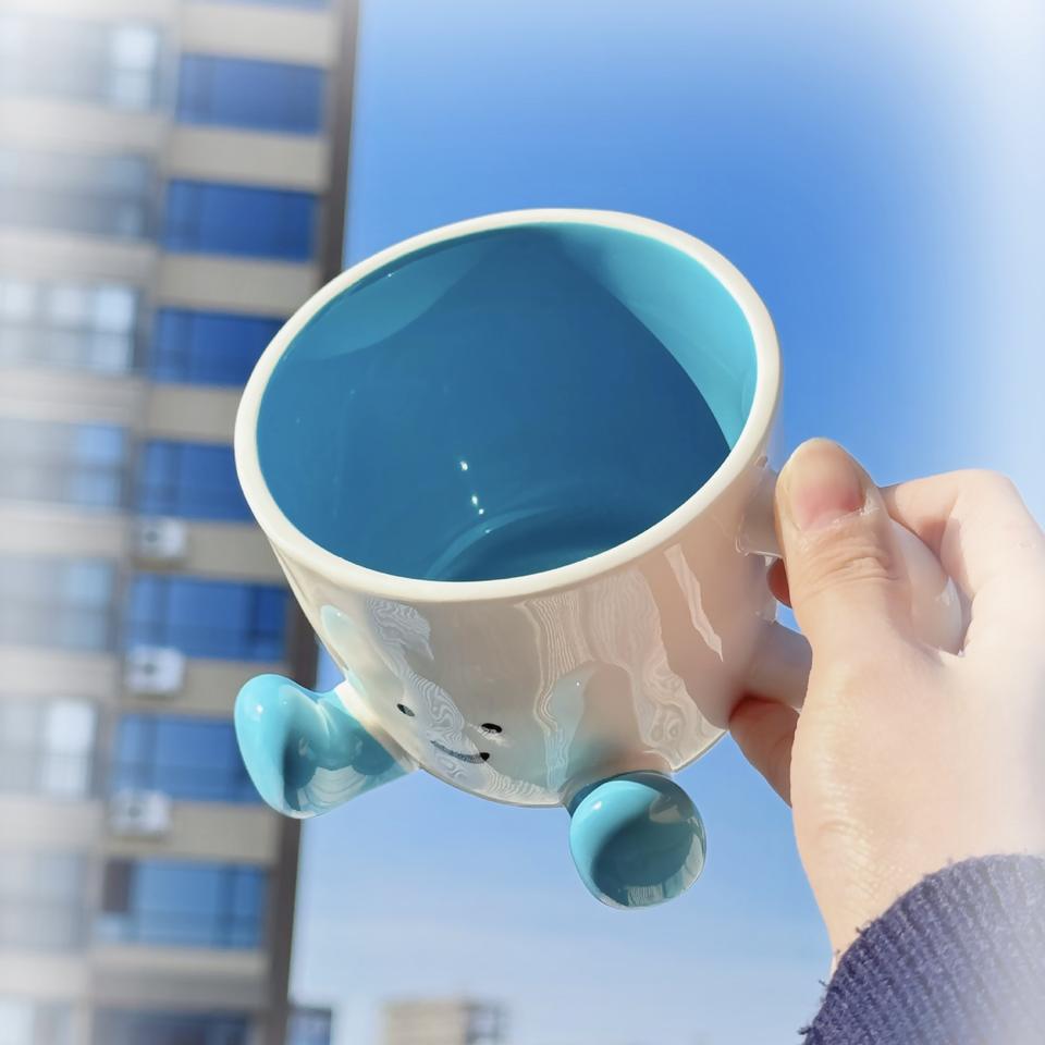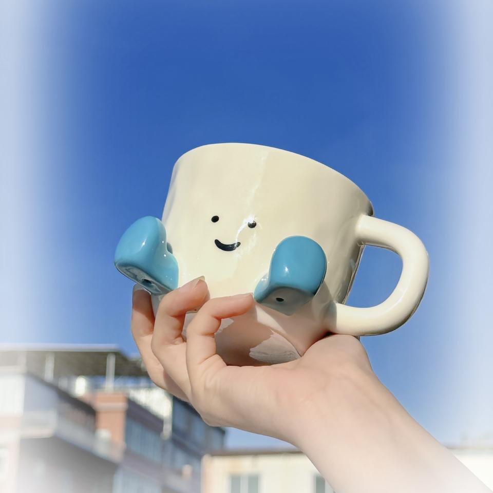 Tazza in Ceramica per Caffè e Acqua, Stile Little Red Book, con Disegno Sottosmalto per Faccine Cartoon, Super Carina, Design di Nicchia Adorabile