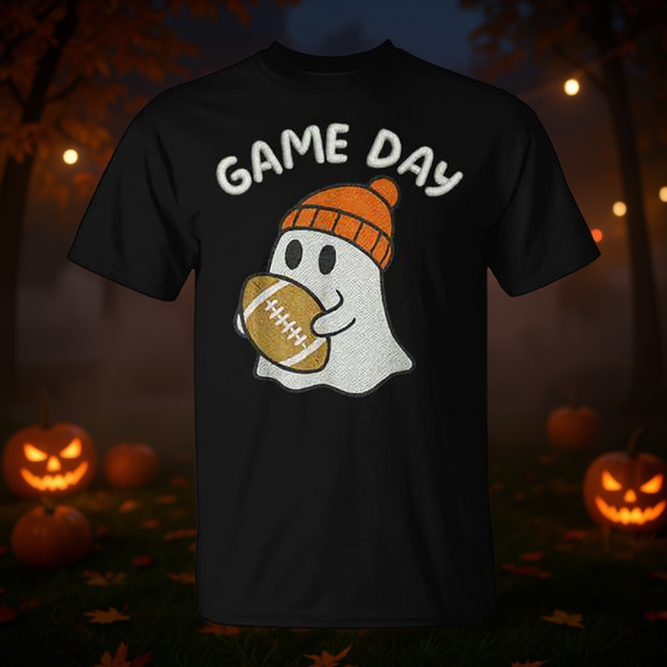 T-shirt Ghost per il giorno della partita di calcio, abbigliamento per la famiglia per la festa di Halloween