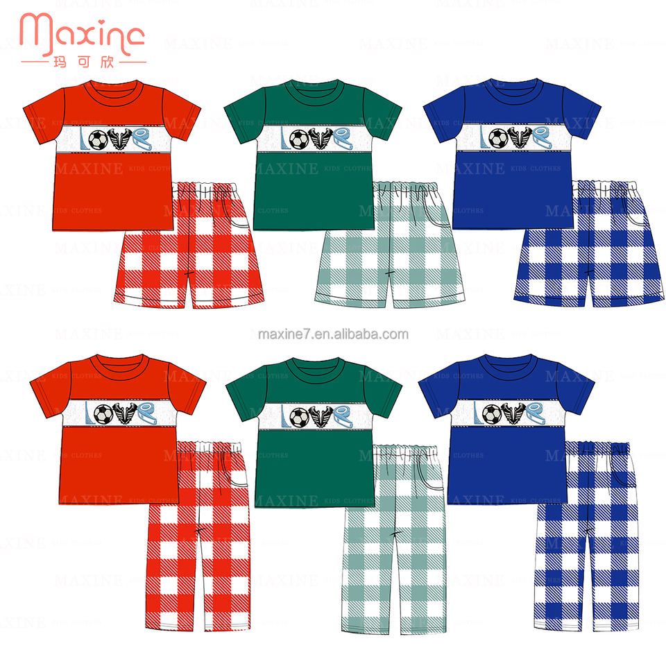 Football Smocked Children Clothing Wholesale Short-sleeved Toddler Boy Sets Boy's Sports Outfit