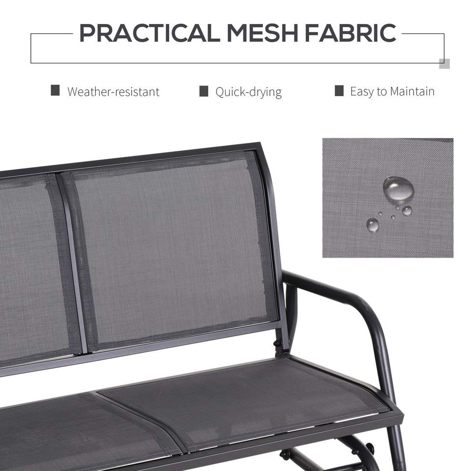 Panchina da Esterno a Dondolo per 2 Persone, Divanetto Doppio con Telaio in Acciaio Verniciato a Polvere Grigio, Sedia a Dondolo da Giardino