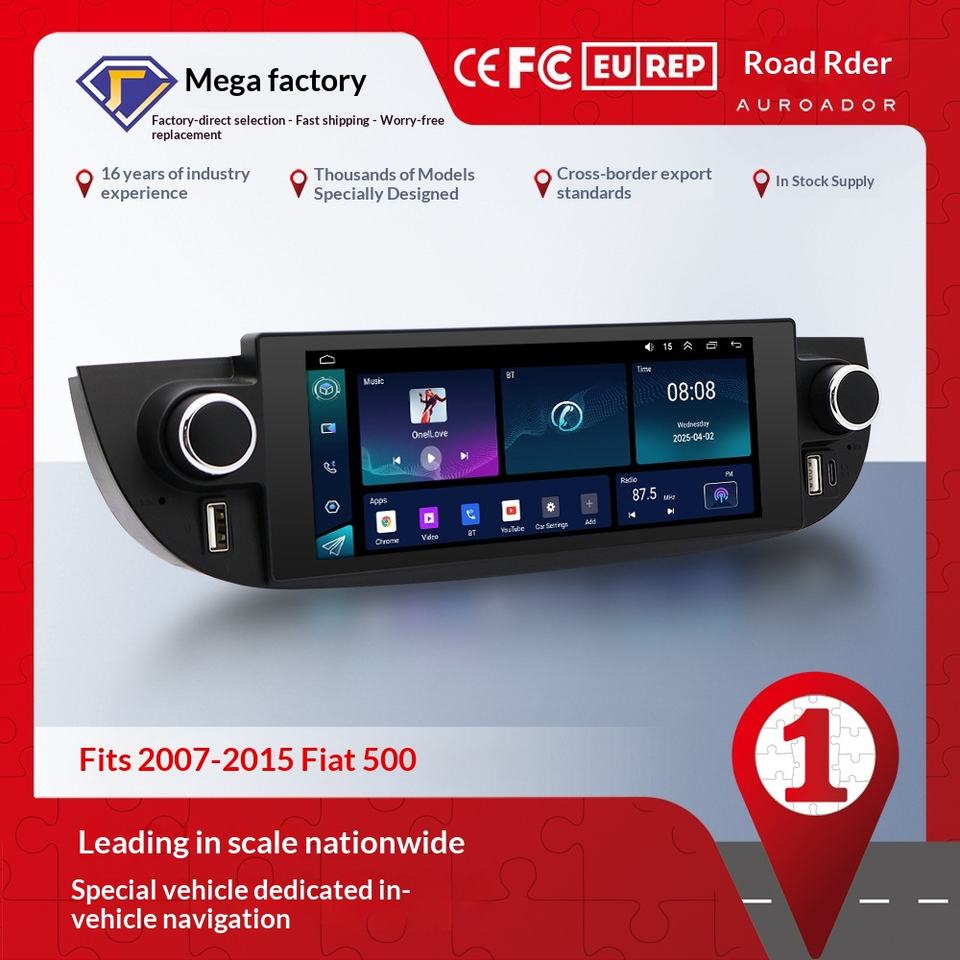 Navigatore Android per Cruscotto Fiat 500 2014-2016 con GPS Integrato, Lettore MP5 e CarPlay Tutto-in-Uno