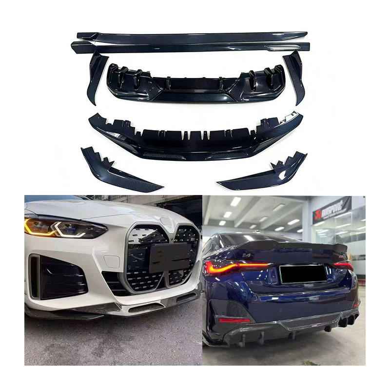 Kit Carrozzeria in Fibra di Carbonio per BMW I4 21: Labbro Anteriore, Diffusore Posteriore e Minigonne Laterali