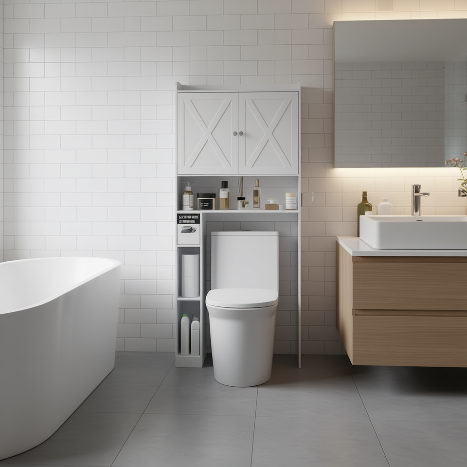 Mobiletto e scaffali da bagno, larghezza 24 pollici, 3 ripiani, autoportante, salvaspazio per l'area WC