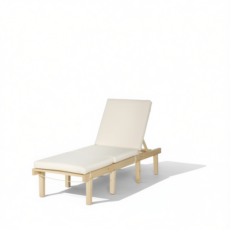 Sedia da Spiaggia Pieghevole in Legno con Cuscino in Schiuma, Design Minimalista, Sedia Lounge da Esterno con Gambe Affusolate, Schienale Solido in Tessuto Poliestere