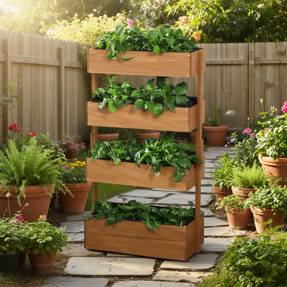 Fioriera verticale in legno a 4 livelli, stile rustico da esterno, per fiori e piante verdi