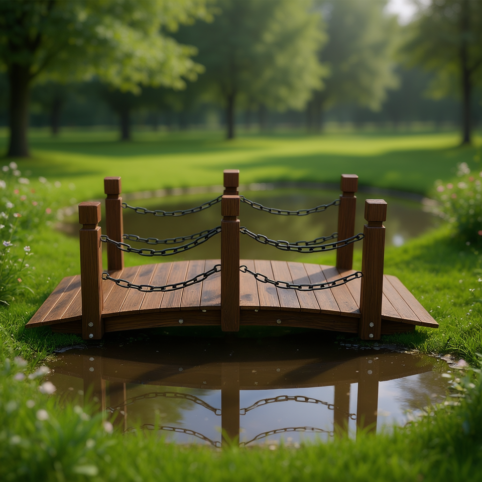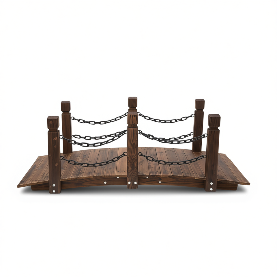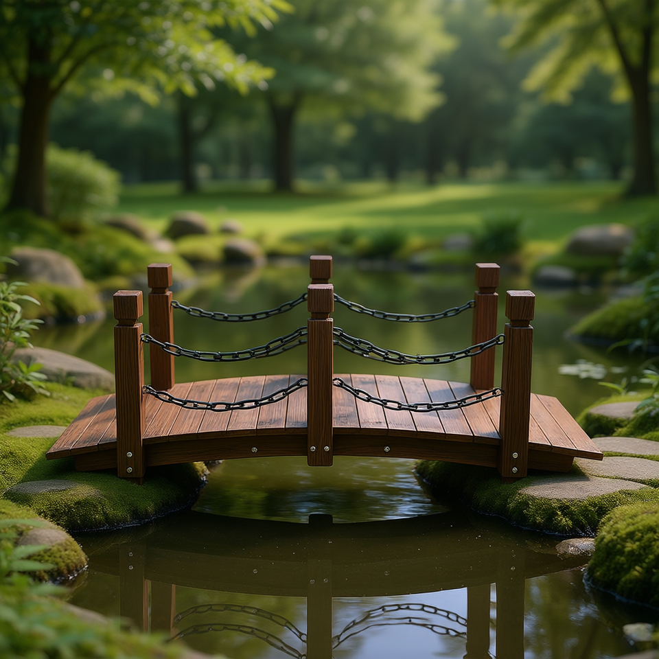 Ponte da Giardino in Legno, Passerella ad Arco con Finitura Naturale, Stile Tradizionale, Ornamento da Giardino per Esterni, Design Autoportante