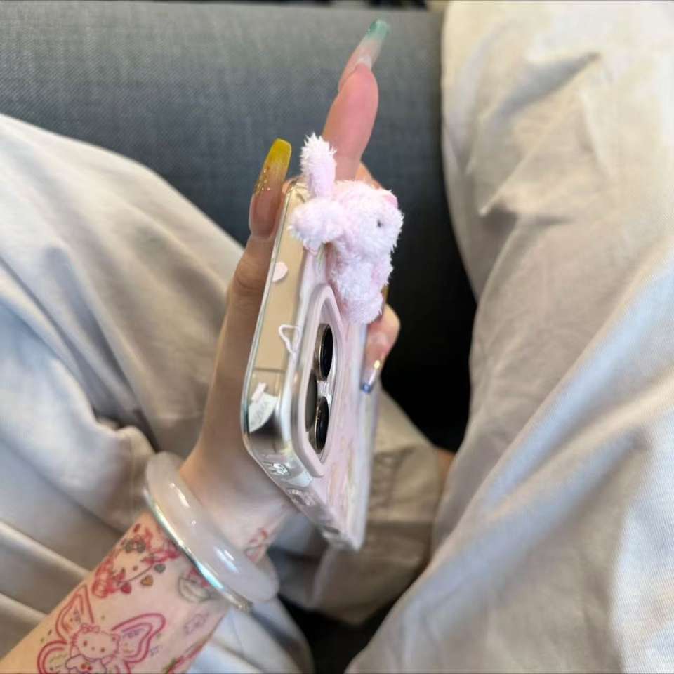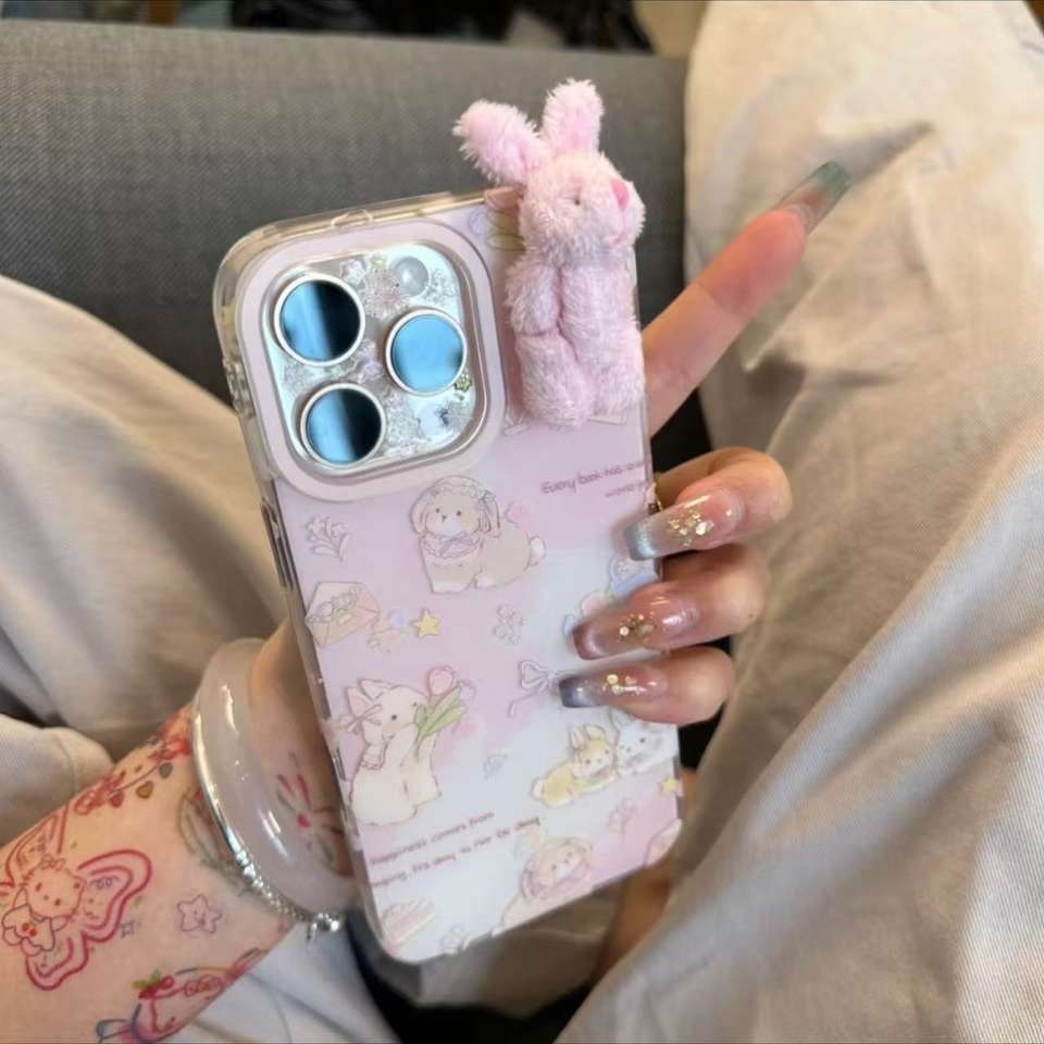 Per Apple 16 Pro Max custodia per cellulare bambola di coniglio rosa in possesso di tulipani iPhone 15 14 13 Plus Cover per telefono