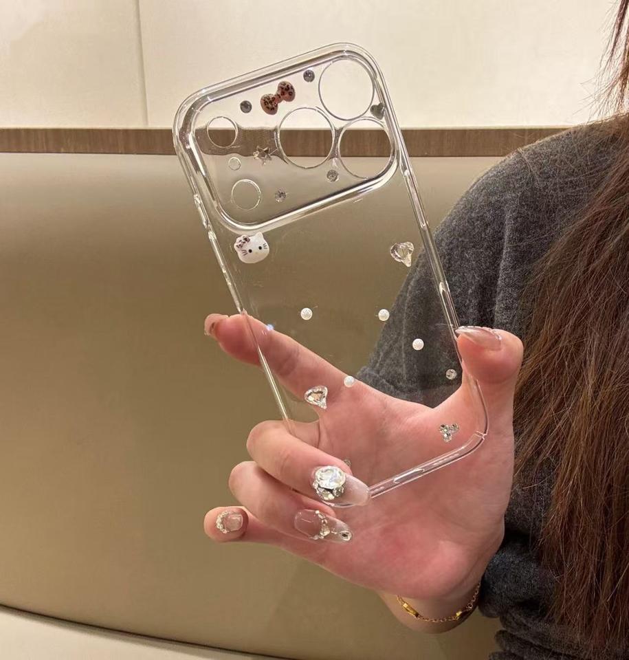 Per Apple 17 Pro Max custodia per telefono cellulare in Cover completa trasparente gattino diamantato custodia per iPhone 16 Plus nuovo modello donna telefono