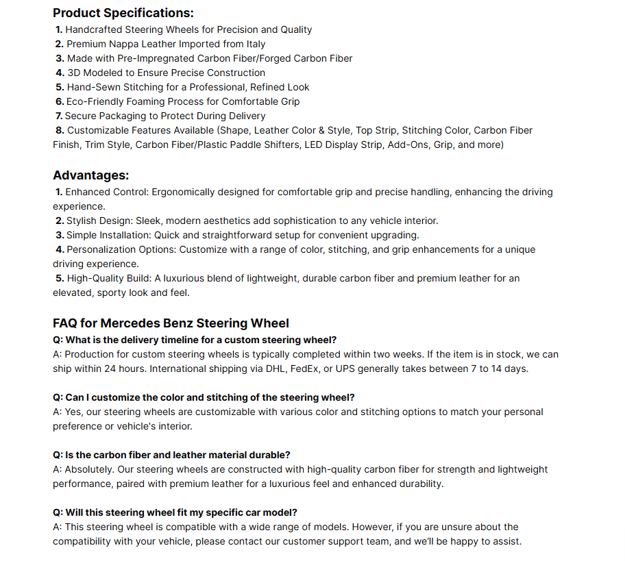 Product Name:Cusotomized Steering Wheel