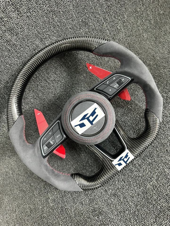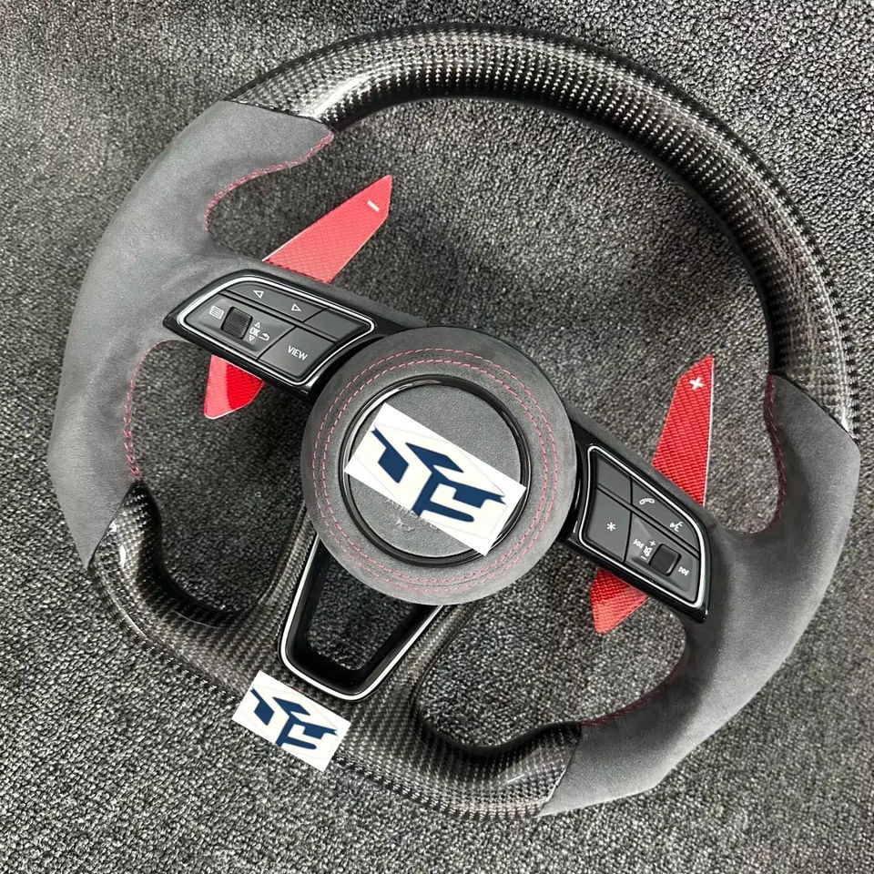 Volante in Fibra di Carbonio e Pelle per Audi R8, TT Mk2, Mk3, B8, RS, TTS, TTRS, RS3, RS6, RS4, RS5, RS7, A3, D3, A4, A5, A6, C6, A7, A8, A1, Q3, Q5, Q7