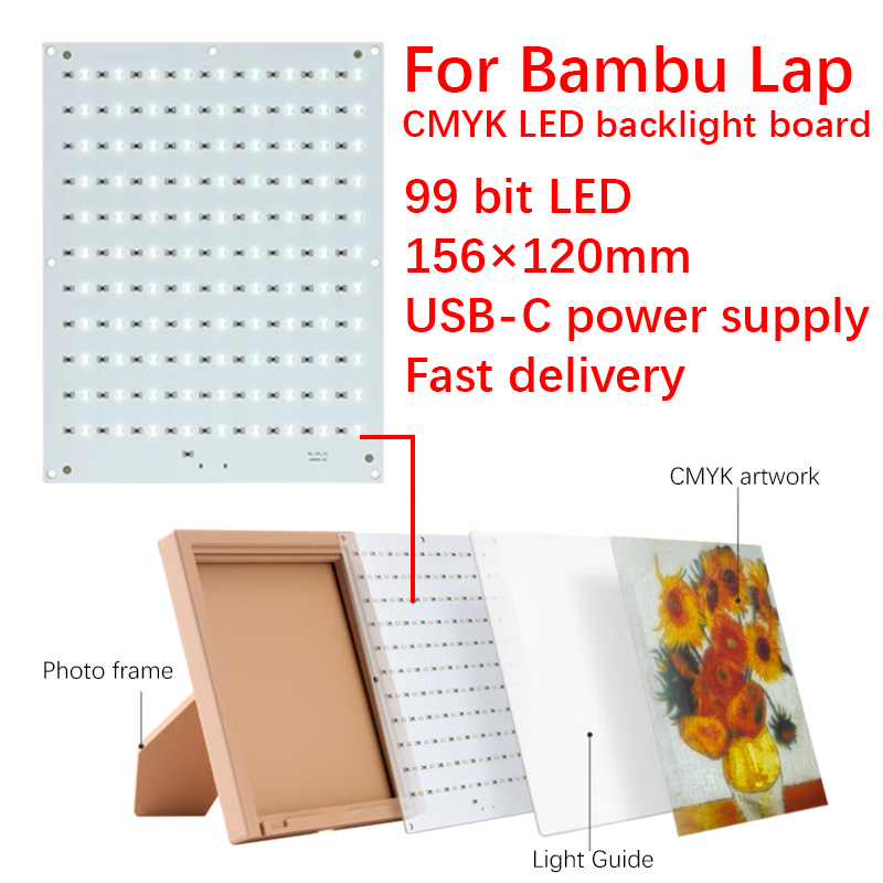 Pannello LED CMYK per Litofania Bambu Lab, Scheda Retroilluminazione LED CMYK Base PLA per Litofania, Stampa 3D Foto Litofania