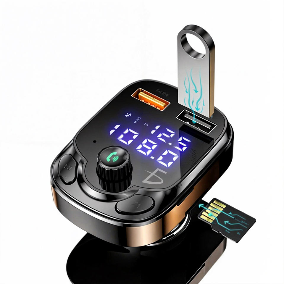 Trasmettitore FM Bluetooth 5.0 per Auto con Funzione Vivavoce, 2 Ingressi USB, Micro SD, Materiale PC, Caricatore Stereo per Telefono